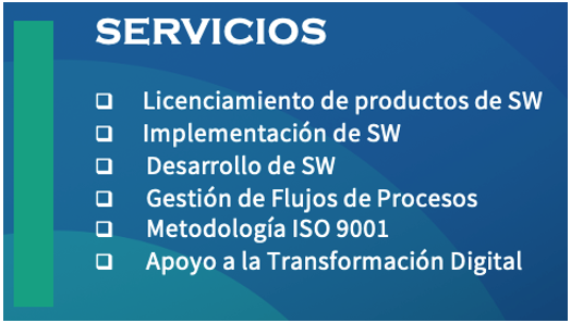 Los Productos que comercializa la empresa son herramientas tecnológicas que apoyan a las instituciones a mejorar y optimizar la ejecución de sus procesos en las áreas de Gestión de Procesos y Personas. Son además herramientas adecuadas para ejecutar la Transformación Digital del Estado. (Ley 21.180).